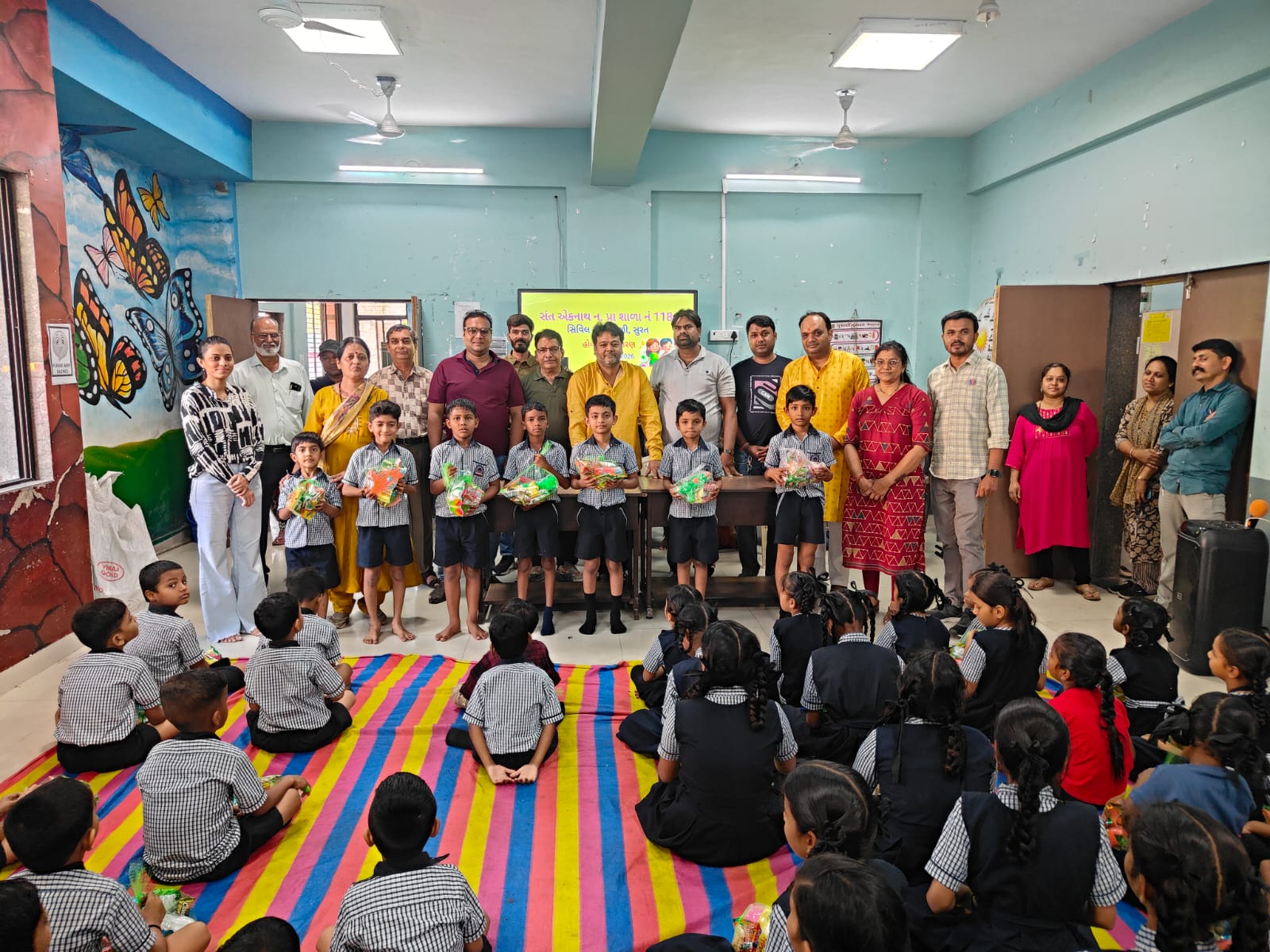 सूरत। सूरत सिविल सेवा मंडली द्वारा इस वर्ष होली का पर्व जरूरतमंद बच्चों के साथ उत्साहपूर्वक मनाया गया। मंडली के अरुण अग्रवाल ने जानकारी देते हुए बताया कि संत एकनाथ प्राथमिक शाला, कतारगाम एवं आसपास की झुग्गी बस्तियों में 150 से अधिक छात्र-छात्राओं को होली किट वितरित की गई।